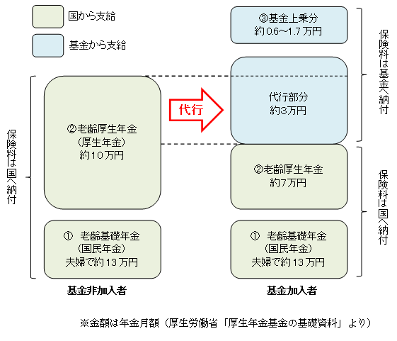 厚生年金基金制度は、厚生年金の一部を国に代わって給付(代行給付)するとともに、さらに基金独自の上乗せ給付を行うことにより、従業員に対してより手厚い老後所得を用意することを目的として創設されました。